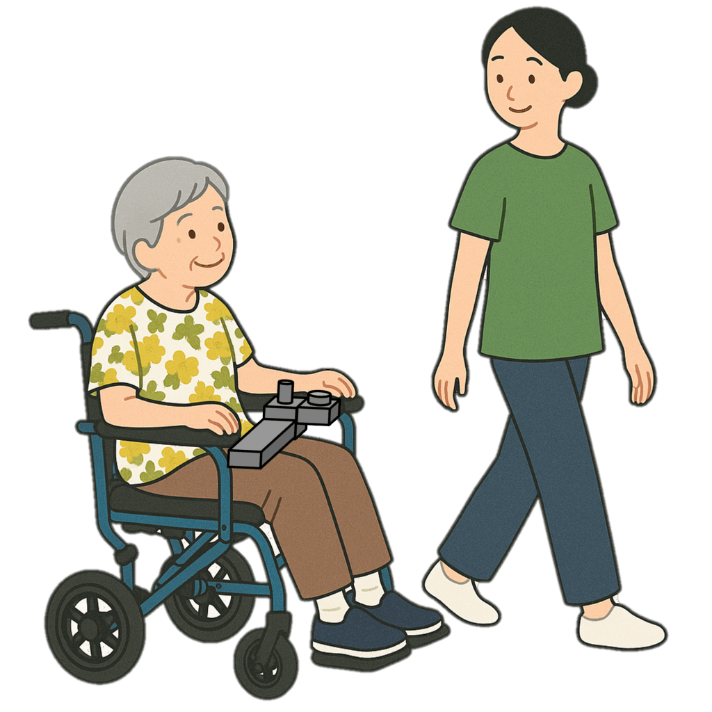 Go-With モジュールは、介助者が電動車椅子の操作をしやすくなる画期的な製品です。電動車椅子に装着することで、介助者は両手フリーで車椅子を誘導できるようになります。